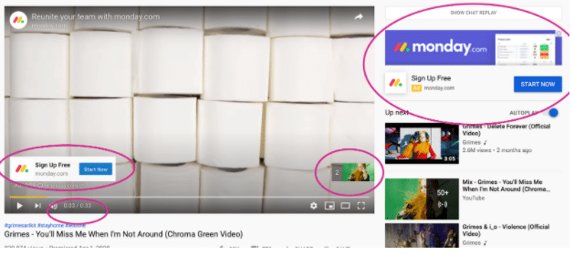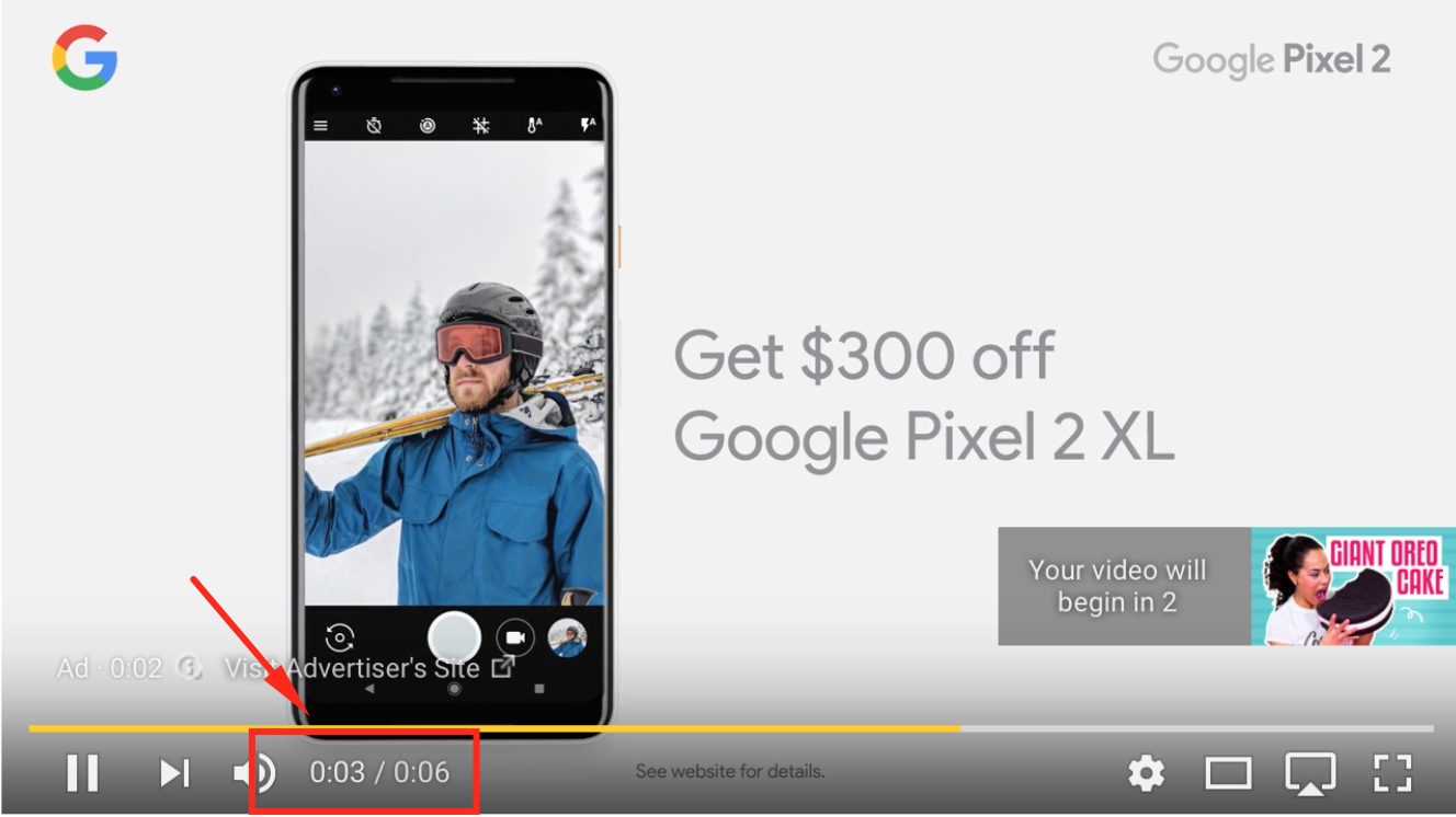 See the image below of an example of TrueView In-stream Ads in action: