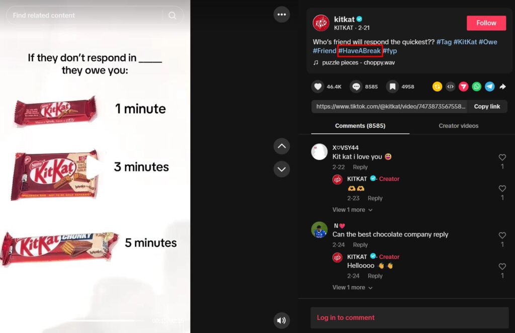 KitKat always publishes content with the hashtag #HaveABreak to increase brand recognition on social platforms.