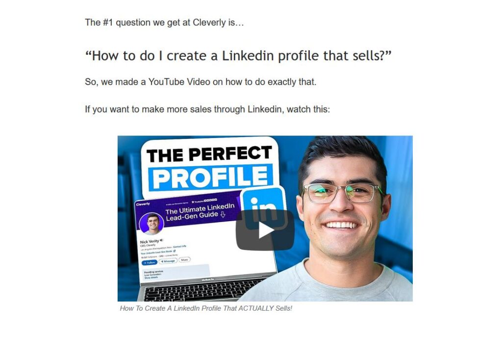 Choosing quality over quantity in B2B, the Cleverly.co team typically shares how-tos, templates, and lists for long-term social media strategy and trust-building via email as well.