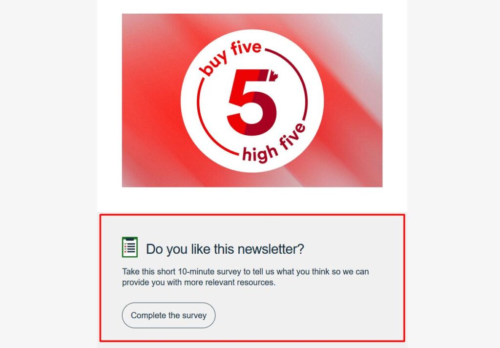 Here’s how the financial brand captured the customer’s voice via email: “Do you like this newsletter? Take this short 10-minute survey to tell us what you think so we can provide you with more relevant resources.”