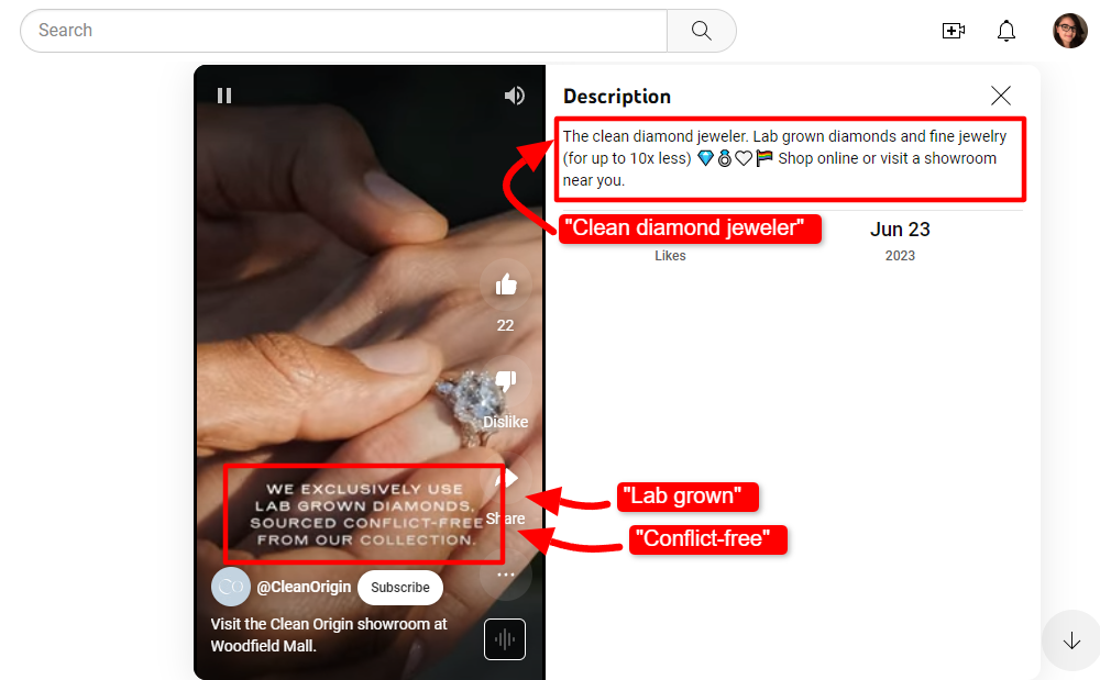 For instance, when referencing its lab-grown diamond stud earrings or custom engagement rings, Custom Origin uses language such as: