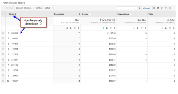 That said, it is possible to leverage GA today to create these sorts of reports. By pushing a non personally identifiable unique ID into a Custom Variable or Custom Dimension, you'll be able to see users who make multiple purchases.