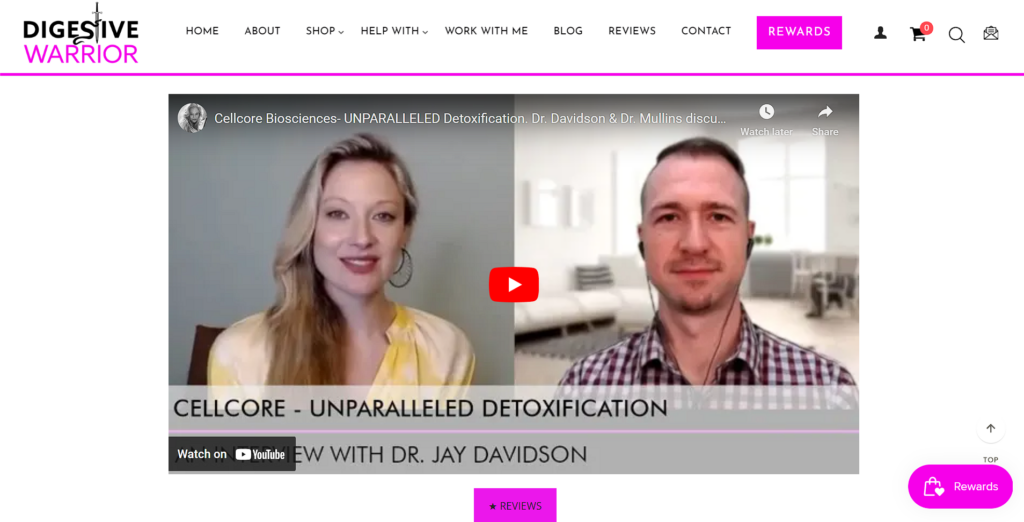 Digestive Warrior, a brand selling supplements for digestive health, exemplifies this tactic on their CellCore category page. They feature a video where professionals discuss the benefits and uses of the products.