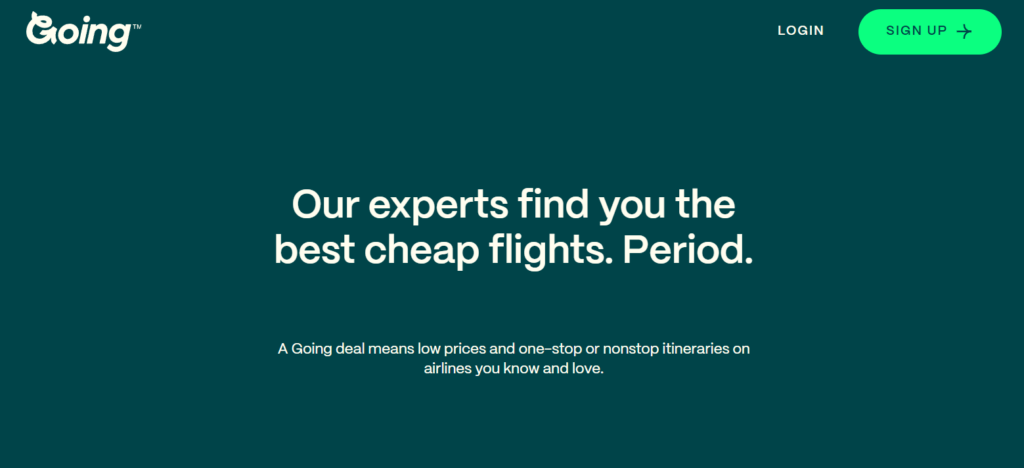 Take a leaf from Going, a premium platform offering airfare deals. Their Cheap Flights page is a masterclass in using negative space.