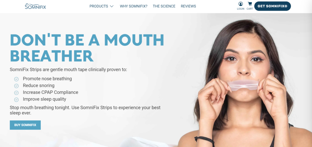 SomniFix, a seller of mouth strips for better sleep, does this brilliantly. Their homepage layout instantly communicates what their unique product does.