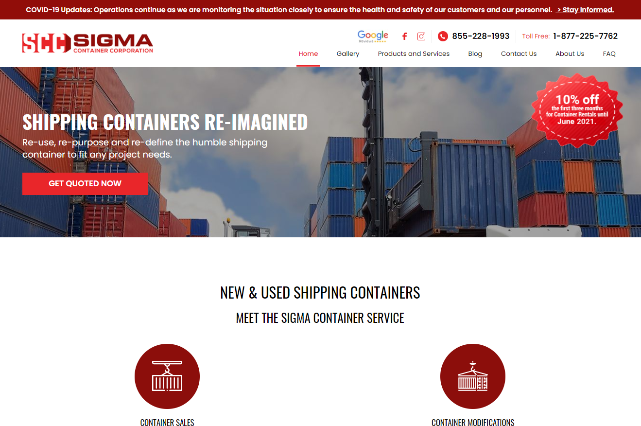 As seen below, Sigma Container Corporation was able to use its own brand colour to accent key points. Most notably, they used their shades of red as colour accents for major selling points, icons, and buttons to draw attention!