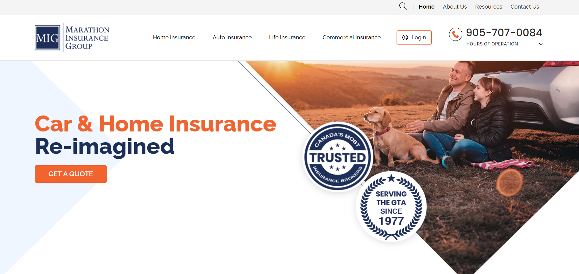 As you can see in the following image, Marathon Insurance Group implements this strategy effectively on their page. Rather than having a full banner image crammed with certifications, they minimized the imagery in an artistic way. Now, the user’s eye is immediately drawn to the text, then the certifications. Once they’ve seen the certifications, the shape of the image points them down the page to continue their scrolling journey.